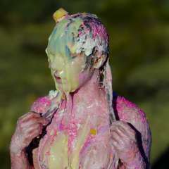 MessyLady_v2 was surprised by Piegirl22 with a big sloppy cream pie to the face